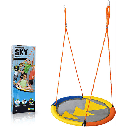 Both children and adults can enjoy swinging fun and relaxation with the 40" Adventure Sky Swing-Triangle! Can be hung from a sturdy tree branch or existing play structure outside, or from an interior ceiling!** Lightweight design made with UV resistant, vibrant colored material.***