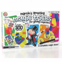 This superb collection features instructions plus special props for 300 Marvin's Magic tricks including the famous Cups and Balls, magician's magic cards, Mysterious Spiked Coin, Magical Changing Cards, Incredible Rainbow Block Escape, Impossible X-Ray Vision, Multiplying Rabbits, Run Rabbit Run Magic Puzzle, Augmented Reality Stage & More!